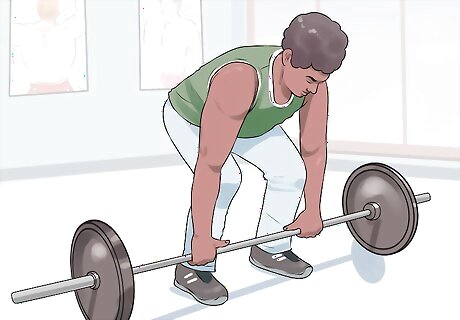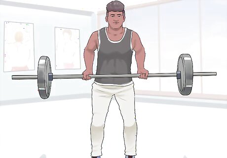 Perform weight-bearing exercises to cope with weak bones. If you are already afflicted with weak bones—including already suffering from osteoporosis—your best non-medical treatment will come through exercise. Individuals with weak bones can strengthen them through so-called “weight bearing” exercises, which place weight on your bones to mimic the strain that comes with supporting your body. Pushing a vacuum cleaner and mowing the lawn are two examples of weight-bearing exercises. Also start a regimen of resistance weight training to improve bone density. You can work on resistance training at a gym, using a weight machine or free weights, or at your home, using resistance-specific elastic bands. If you’re interested in finding out more about specific exercises you can do to strengthen bones—and any that you should avoid—consult with your doctor.