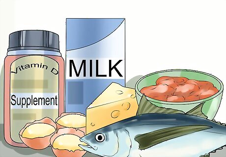 Protect your bones by consuming more vitamin D. Along with calcium, vitamin D is the most vital nutrient for bone health. Adults should consume between 600 and 800 international units (IUs) of vitamin D daily. Vitamin D can be consumed through vitamin supplements (available at your local health food store). Vitamin D is also found in fortified dairy products (along with calcium) and egg yolks, as well as fish and liver. If you’re concerned about your overall bone health or bone strength, or are worried that you may be suffering from osteoporosis, ask your doctor for a bone density screening. This procedure can remove the uncertainty of not knowing whether your bones are strong and healthy.