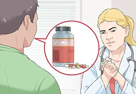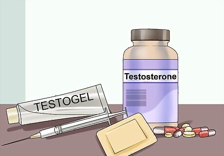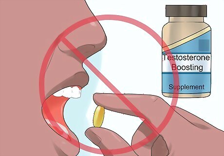 Avoid taking testosterone-boosting supplements. You should only plan to increase your testosterone levels through doctor-prescribed treatments, and through natural methods like exercise and diet modification. Many supplements—including those advertised online or in infomercials—will do your body little good and will not help boost testosterone levels. This supplement restriction includes taking supplements of hormone DHEA: a naturally produced hormone that your body converts into testosterone. Your body produces DHEA on its own, and taking DHEA supplements will have little effect on your testosterone levels. If you’ve heard about a herbal testosterone treatment or are thinking of beginning a homeopathic method, always ask your doctor before you begin.