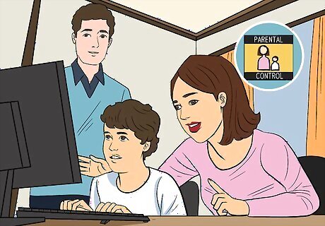 Monitor your child's online activities. Review your child's internet history every week to ensure there is no suspicious activity. Look for any inappropriate links they may have opened or pornographic images that appear in their email or messages. Many predators will send images or messages as a way to lure children. You may also want to keep the computer in a common space, like the living room or the dining room, so your child cannot go on the computer unmonitored. This will make it more difficult for them to fall into inappropriate interactions online. You can install software on the computer or parental control apps on your child’s mobile devices that will block sites that are considered inappropriate for children. Some popular options include Net Nanny, Norton Family Premier, and Kaspersky Safe Kids.
