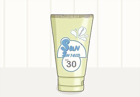 Wear water-resistant sunscreen that has an SPF of at least 30. A little bit of sunlight is healthy for you, but too much can increase your risk of skin cancer. Look for a sunscreen that has an SPF of 30 or higher, and make sure that it’s waterproof so it doesn’t come off as easily when you sweat. Rub the sunscreen onto any skin that’s still exposed and work it in until it’s clear. The sunscreen will help block UV rays that cause sunburn so you can work outdoors for an extended period of time. Don’t forget areas that are commonly missed, such as your face, ears, and the back of your neck.Tip: Be sure to reapply your sunscreen after 2 hours since it can lose effectiveness as you’re working.