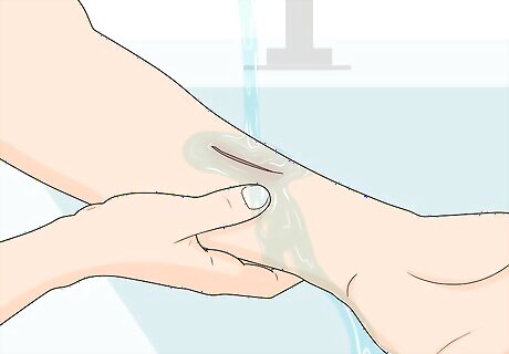 Clean any wounds immediately to prevent infection. If you ever puncture your gloves or break your skin by scratching it on a plant, take off your gloves and stop gardening immediately. Wash off the wound with warm, soapy water and apply an antibacterial cream or spray so it doesn’t get infected. Wrap the wound in a bandage before continuing gardening so you don’t expose it to any harmful materials. You can also keep antibacterial creams or sprays out with you while you’re gardening to treat the wound right away. Wash the wound as soon as you’re able to ensure it doesn’t get infected. If you punctured through a pair of gloves, then use a different pair when you continue gardening so you don’t reintroduce any bacteria.