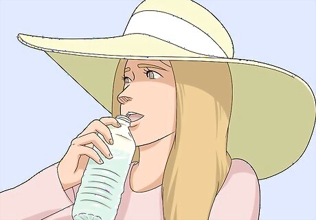 Keep yourself well-hydrated. While you’re in the garden, always have a bottle of water on hand and take regular sips as you work. This will help you stay cool and hydrated if it’s hot out, and will also help keep your skin well-hydrated as you lose water from exertion and sweating. Most doctors recommend drinking at least 8 glasses of water a day. If you’re working up a sweat, you may need more. A good rule of thumb is to drink whenever you start to feel thirsty.