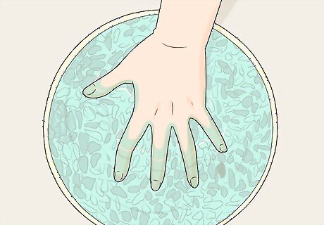 Do an oatmeal soak to help alleviate any itching or rashes. Oatmeal can soothe your skin to help relieve pain from rashes or itching. Fill a large mixing bowl with ¼ cup (25 g) of dry rolled oats and pour in ⁄2 gallon (1.9 L) of warm water. Put your hands or the affected area in the bowl and let them soak for 10-15 minutes to help reduce any itchiness and pain. When you’re finished, rinse your hands and moisturize them with lotion so your hands don’t dry out any more. If you want to do a full body soak, then add ½ cup (50 g) of oats to a full bathtub instead.