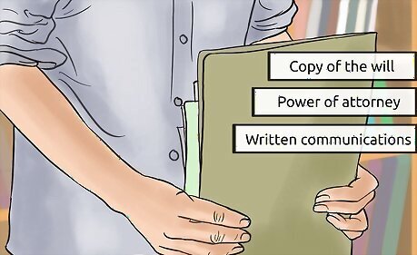 Create exhibits. You can introduce helpful documents into court as exhibits. You can turn a document into an exhibit by affixing an exhibit sticker on the document. You will probably need to make multiple copies of exhibits. Make at least two—one for you and one for the other side. The following might be helpful documents you can introduce: A power of attorney that shows someone other than you had power over the deceased’s finances and health care decisions. A copy of the will that shows you did not receive a substantial benefit under the will. Written communications between the deceased and his or her lawyer showing the deceased’s motivations for creating the will.