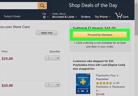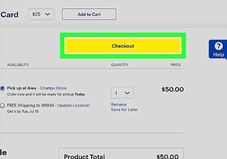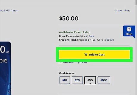 Click the yellow Add to Cart button. This is along the right. A page will load with recommendations for your next purchase. You can choose to pick-up the card at a local store or have it delivered for a fee.