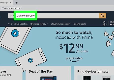 Type Digital PSN Card in the search bar. This is centered near the top of the site. Press press ↵ Enter or ⏎ Return on your keyboard to start the search.