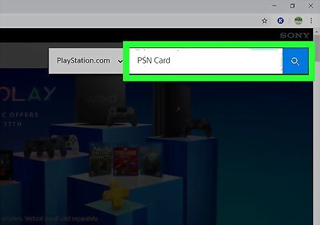Type PSN Card in the search bar. This is centered near the top of the site. Press press ↵ Enter or ⏎ Return on your keyboard to start the search.