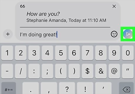 Tap the paper plane icon. This button is next to the message field in the lower-right corner. It will send your message along with your quotation to the chat conversation
