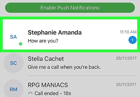 Tap a chat conversation. Find the conversation you want to message, and open it.