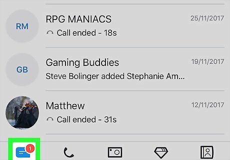 Tap the Chats tab. This button looks like a speech bubble icon in the lower-left corner of your screen. It will open a list of all your recent personal and group chats.