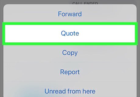 Tap and hold a chat message. Find the message you want to quote, and long-press on the message bubble. Your options will slide up from the bottom of your screen.