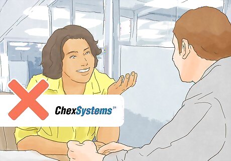 Identify banks that do not use ChexSystems. If your bank closed your account, you may have negative information on your ChexSystems report. However, not all banks use ChexSystems. There also are some that review all applications on a case-by-case basis. Likewise, if your bank used a different service, you should look for banks that don't use that service. These banks will be more likely to open an account for you because they won't know about what happened between you and the bank that closed your account. You may be able to find this information on the bank's website. If not, you can always call the toll-free customer service line and ask. Many branches also have the logo of the service they use on their doors.