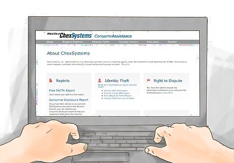 Look at your ChexSystems report. If you bank in the United States, the account closure may have been reported to ChexSystems, a consumer reporting service that provides banks with information about your banking history and relationship with banks. There are several different companies in the U.S. that do this, but ChexSystems is the most popular. You may want to contact your bank to find out which system they use. You can get a copy of your report by visiting consumerdebit.com or calling 1-800-428-9623. If there are any inaccuracies on the report, you can dispute them with ChexSystems and they will work with the reporting institution to correct them.