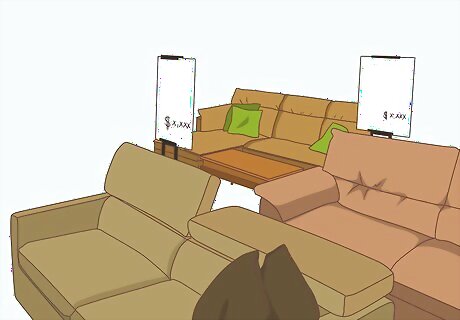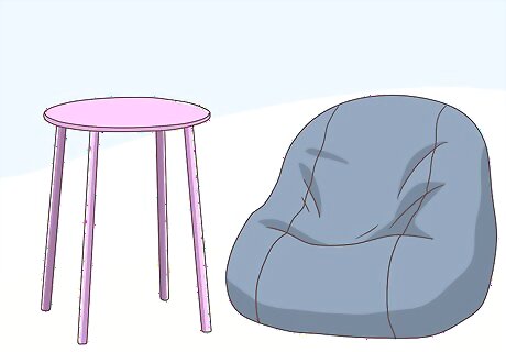 Buy some chairs. When your friends come over and hang out, you don't want them to sit on the floor. Buy some chairs so that you and your friends have a comfy spot to sit. You can buy some beanbag chairs, or a moon chair. Even an ottoman would work well, especially if it has storage space inside. Try to keep your furniture within your color scheme.