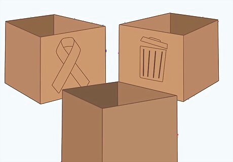 Before you do anything, go through all of your stuff. Sort everything into four piles: keep, trash, give away and to decorate with. Keep everything you want to keep, trash junk, recycle papers, give stuff away to family/friends, and donate the other stuff to Goodwill or the Salvation Army. This is a pretty essential step because it will help declutter your room as well as get rid of clothes that you don't want. Empty your room of any unwanted toys, games, etc. so you don't have to re-clean your room after.