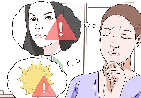 Identify potential triggers. While you might think that external things trigger your anger (such as people and situations), take a moment and ask yourself how your thoughts contribute. Perhaps you blame the weather or even other people for bad things happening or for the way you feel. Or maybe you feel more frustrated or easily more easily set off when there’s increased heat. It’s possible you overlook positive things while letting negative things mount. Whatever it is, notice how your own thoughts affect your anger and aggression. If you notice negative thought patterns contributing to your aggression, replace the negative thoughts with more positive thoughts For example, if you’re thinking, “If one more person bothers me I’m going to explode!” stop and think to yourself, “I know that heat can make me more on edge. It’s okay if people need help.” Remind yourself that you hold the lever of your own upset and can increase or decrease it if you pay attention.