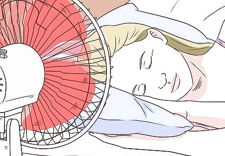 Get good sleep. If it’s too hot, you may struggle to fall asleep. Heat can contribute to difficulties in falling asleep and getting enduring, quality sleep. If heat is affecting your sleep, use a fan or open your bedroom windows. Heat rises, so consider sleeping downstairs. Keep rooms cool during the day by using blinds. It is recommended that adults get 7.5-9 hours of sleep per night. School-aged children need about 10-13 hours of sleep per night. Do whatever you can to control your environment. Try adding window or portable air conditioners, or dehumidifiers if humidity remains high indoors.