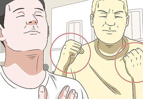 Notice how aggression feels in your body. You have a physical response when you feel angry or aggressive. Your stomach might knot up, you may tighten your fists, tense your muscles, or begin to breathe faster. If you start to notice your body making these changes, relax. Focus on loosening your muscles and calming your mind. Just like you notice that you feel hot, become aware of what feelings you have that accompany your elevated temperature. Your body can give you early warning signs of your aggression. Listen up and aim to relax as quickly as possible to avoid escalating your aggression.