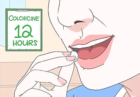 Take colchicine at the first sign of a flare-up. Colchicine is a prescription medication that’s usually taken in tablet form 1 to 2 times per day during a flare-up. It’s most effective when taken as soon as possible after symptoms develop. If you have gout, your doctor will write you a prescription so you’ll have it on hand in case a flare-up occurs. Most people who take colchicine experience nausea, vomiting, or diarrhea. If side effects interfere with your normal routine, talk to your doctor about lowering your dose. Do not eat grapefruit or drink grapefruit juice while taking colchicine.