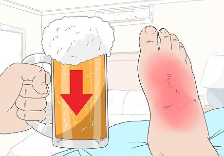Manage your symptoms with an over-the-counter pain reliever. Your doctor may suggest taking a high-dose NSAID pain reliever, such as ibuprofen or naproxen, while symptoms persist. Check with them about the right amount of medicine to take. Dosages used to treat gout flare-ups are typically higher than the maximum amount recommended on instruction labels. For instance, your doctor may advise taking 800 mg of ibuprofen 4 times a day while you experience symptoms and for an additional 24 hours after pain and inflammation subside.Warning: Consult your doctor before taking NSAID pain relievers if you have an ulcer, kidney issues, liver disease, heart failure, or a bleeding condition, or if you take a blood thinner.