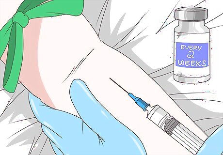 Control uric acid with pegloticase if other drugs aren’t effective. If allopurinal or similar oral drugs are ineffective or cause intolerable side effects, your doctor may prescribe pegloticase injections. It’s usually administered every 2 weeks, and you’ll need to visit your doctor’s office to receive injections. Side effects may include nausea, vomiting, constipation, bruising, and sore throat. Tell your doctor if any side effects are severe, or if you experience rash, difficulty breathing, or swelling.