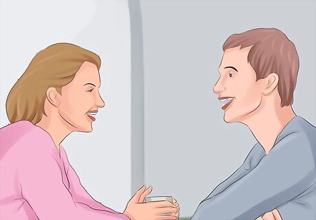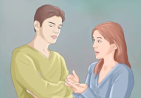 Look at them when they talk. Making eye contact with your spouse lets them know that you are focused on them alone and ready to listen. Your facial expression matters, too. Don’t scowl at them or roll your eyes when they begin speaking.