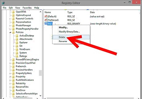 On the right side of the Registry Editor windows, you would see an item named as "Key", right-click on it and select Delete.
