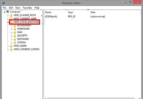 Click on the + sign to the left of HKEY_LOCAL_MACHINE.