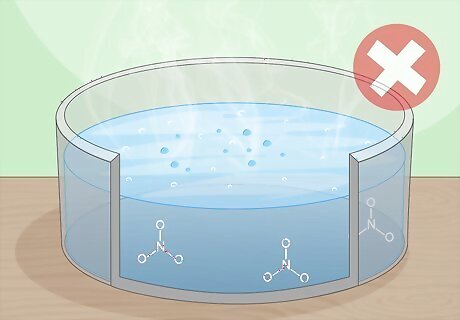 Do not try to remove nitrates by boiling the water. Nitrates aren’t a microorganism that you can kill off by boiling your water. In fact, boiling the water will only further concentrate the amount of nitrates in it, since some of the water will evaporate but all the nitrates will be left behind. If your water has a nitrate level at or near the max recommendation, and you need to boil it to remove other pathogens, dilute it with bottled or distilled water afterward.
