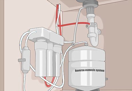 Have a pro set up an ion exchange unit and water softener. This type of unit sends high-nitrate water into a tank containing resin pellets that trade nitrate ions for chloride ions. The water is then piped to your faucet or whole home. The resin is recharged with chloride ions by an adjacent tank filled with sodium chloride brine. Ion exchange units look and work much like household water softener units, but they are uniquely designed to remove nitrates. You’ll have to regenerate the brine tank with sodium chloride on a regular schedule, as recommended by the manufacturer. This method also makes the “clean” water more corrosive, so you’ll need to use a water softener or other neutralization method as well.