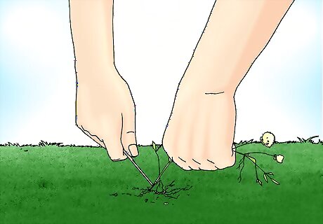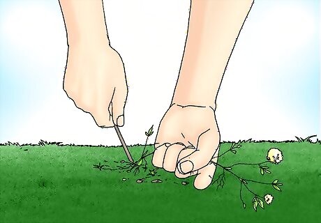 Avoid mowing your lawn to stop the spread of clover. Prior to pulling your clover, do not mow your lawn. Mowing will disperse seeds and spread the plant across your lawn.