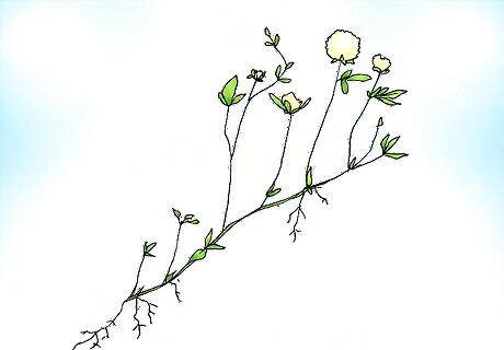 Understand why white clover grows to remove it properly. To understand how to remove clover, you must understand why it is there in the first place. Clover is a natural grass that at one time covered most of the open prairie North America. Being an edible plant, the clover was encouraged to grow in open fields to provide food for livestock. It flourished in these areas, and subsequently spread as a weed to local lawns where it isn't as welcome. White clover is very bad at surviving in lush lawns, and performs badly in nutrient rich soil. If there is an existing plant that is flourishing, clover will very rarely edge that plant from it’s area. Clover prefers to fill in areas previously left bald by poorly maintained lawns and drought. The plant reproduces by small seeds that need to land on soil before sprouting, so heavy ground cover will prevent white clover from germinating.