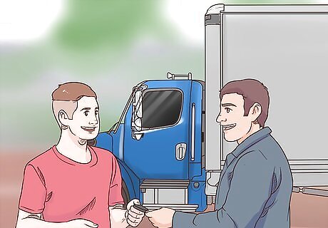 Show the clerk your driver’s license and pass a background check. The law requires anybody who rents a truck to have a valid government-issued driver’s license. In addition, some companies may run a background check on you to see if you have any recent moving violations or vehicle-related convictions. In most cases, your background check will occur while the company verifies your license. Since they’re looking exclusively at your driving record, the background check should only take a few minutes.