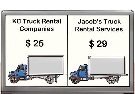 Compare prices to find the best deal. Before committing to a specific rental company, look at how much each store charges for the type of truck you want. Some stores offer rental estimates through their official website, though others may require you to call their customer hotline for current pricing information. When comparing prices, keep in mind that some companies charge an additional fee for each mile you drive. Make sure you look at each company’s website to see if there are any promotional discounts available, and don’t forget to search online for third-party coupons from groups like AAA.