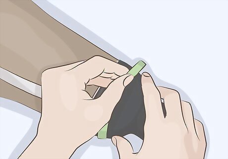 Lay the suit flat and cut off the old gasket with a pair of sharp scissors. Place the drysuit on a flat working surface such as a table or sturdy desk. Take a pair of sharp scissors and cut from the outer edge of the gasket toward where it connects to the suit. Then, cut along where the old gasket connects to the material of the drysuit. Make even cuts and remove all of the old gasket material from the drysuit.