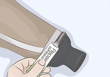 Apply a thin line of repair adhesive on the underside of the gasket. Take a tube of repair adhesive and spread a continuous line around the underside of the gasket that you folded over the rubber band. Make sure there aren’t any gaps in the line so the adhesive forms a tight seal. You can find repair adhesive at diving supply shops and online. Popular brands of repair adhesive include Gear Aid Aquaseal and M Essentials Aquaseal.
