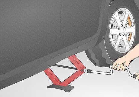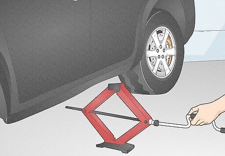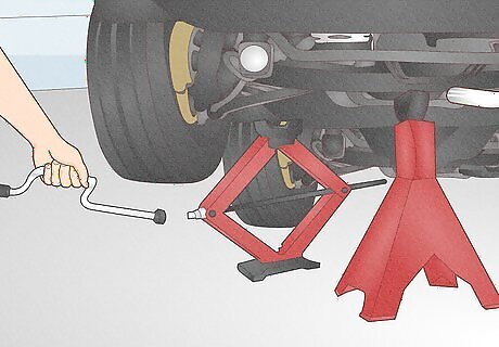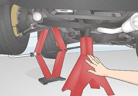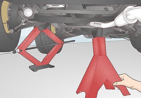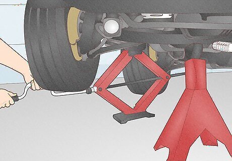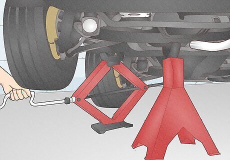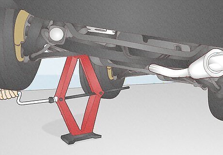 Use jack to lift the vehicle high enough to be able to work underneath Be cautious. The vehicle might shift if the jack is on wheels and the ground is not reasonably level (flat). If only the rear wheels are lifted, be sure that the emergency brake is set or the vehicle is in Park or in gear to prevent rolling.