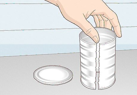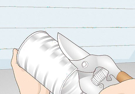 Use tin snips or heavy duty scissors to cut the can up the side and to cut the bottom out of the can. (Note: don't attempt to cut the can with ordinary household scissors. It might work, but the scissors will be destroyed.) The bottom of the can may be removed with an ordinary can opener so that the bead is retained for strength purposes. Be very careful cutting the can, the edges are extremely sharp. Wear thick gloves such as leather gloves or even a good grade of mechanics gloves (not nitrile 'rubber' gloves).