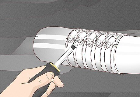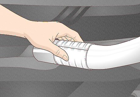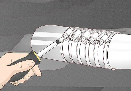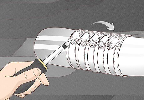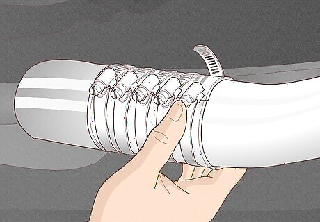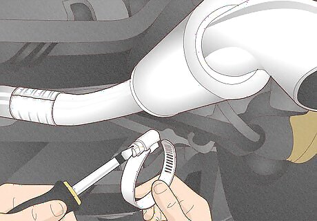 Make sure that the transmission is in neutral (standard transmission) or Park (automatic) and start the vehicle to determine whether the exhaust leak has been fixed. If the exhaust leak is still present, recheck the clamps to ensure all are tight and ensure the can is completely covering the hole in the exhaust pipe. If the pipe is too weak to support the clamps, the pipe might have collapsed inside during tightening, reducing the diameter of the original pipe. Feel around the edges of the patch without touching the material as the engine is idling to sense any escaping hot gases (turn sensitive portion of your hand nearest the pipe). If you can feel the gases escaping, chances are that the seal is not going to hold for long. You can either take your chances or redo the procedure using a sealant putty designed for exhaust joints. Another alternative is to use one of the wraps that tend to blow open and wrap the can around the installed wrap to provide a strong positive seal. However, if the pipe is too deteriorated, it is time for a new pipe.