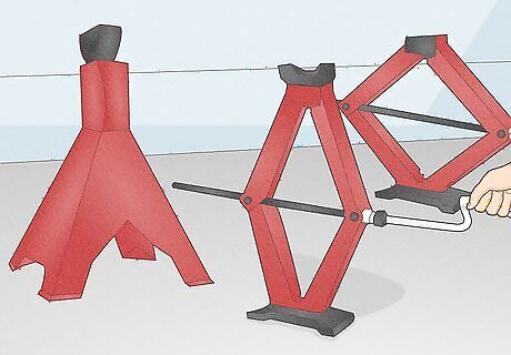 Ensure your vehicle jack and jack stands are in proper working order and have the capacity to hold your vehicle prior to beginning the jacking sequence. Use chocks or pieces of wood ahead and behind the last wheel that you intend to jack. For example, if you intend to lift the front of the vehicle, place chocks in front and behind the rear wheels. If all four wheels are to be lifted, set the emergency brake, put the vehicle in Park or in gear and lift the rear wheels first. The decision will be most likely made based on where the repair is to be accomplished. Vehicle exhaust pipes run from the front to the rear on most vehicles (not all).