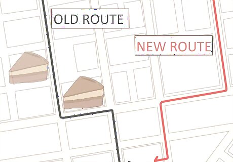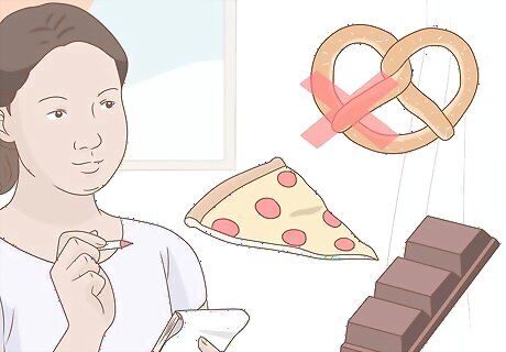 Stay away from situations that might make you eat. If there are places or times where you’re more likely to eat naughty foods, steer clear of them. If you can’t see a movie in the theater without your chosen candy, don’t go. If you and a friend always eat cake when you go to a certain restaurant, change it up and go somewhere that doesn't serve cake. Make it harder for you to indulge in your cravings.