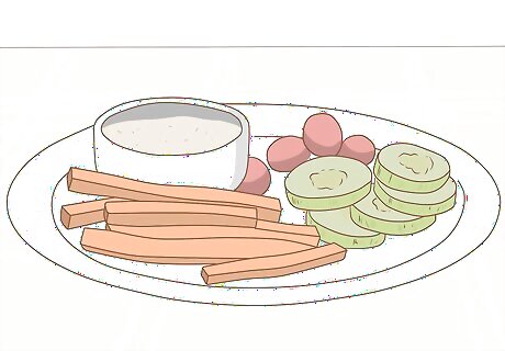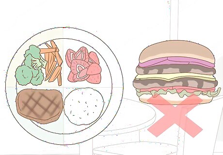 Eat regularly and practice portion control. Aim to eat regular, small-sized meals throughout the day that are healthy and well-balanced. This will help to maintain your blood sugar at an even level and prevent craving spikes. Avoid refined carbohydrates as much as possible. As delicious as they are, they stimulate cravings by making your blood sugar spike and then drop dramatically.