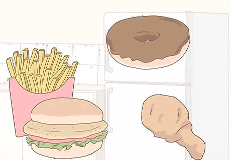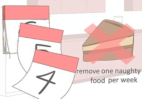 Determine your naughty foods. Identify the foods you don't want to or should not be eating for nutritional, diet, health, religious, or other reasons but you're indulging in anyway. Think about why they are appealing to you – is there some taste or attribute that you get from those foods that you don’t have in your diet? Some examples that commonly apply include: Fast food on a regular basis, such as fries, burgers, hot dogs, fried anything, etc. Pastries, cakes, cookies, doughnuts, and other baked goods. Sugary breakfast cereals. Fat-laden dishes. Chocolate and candies. Foods that bring on a headache or migraine, hives, rashes, or a general feeling of unwellness (this does not refer to foods that result in severe, life-threatening allergic reactions – you'll be more than aware that you can't indulge in those). Foods that seem to impact your complexion or your energy levels poorly. Foods that are not supposed be eaten because of your faith-based or other beliefs, such as meat, beef, ham, pork, unfiltered drinking water, etc. Foods that leave you feeling guilty or remorseful for eating.