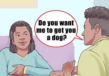 Ensure the person who you give a dog to wants a dog. Dogs are big commitments, and foisting such a commitment on someone without their prior approval or knowledge could lead to the recipient rejecting the gift. Changing hands so many times in such a short time is stressful for the dog. To find out if the person you plan on gifting the dog to wants a dog, simply ask, “Do you want me to get you a dog?” Sometimes, even if someone wants a dog, it’s best if they don’t receive one. For instance, if you’re a parent considering gifting a dog to your young child, you should remember that you will be the one taking care of the dog most of its 10-15+ year life, not your child. Also consider whether the person is physically and mentally prepared to have a dog. Someone with health issues or a physical disability may not be ready to care for a dog.