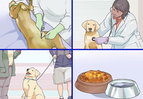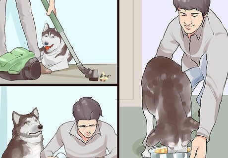 Be patient with your dog. Your new dog might need to be housebroken. It might bark noisily and jump on furniture. But with time and training, you can help your dog become a well-behaved member of the family. To reduce the likelihood of trouble, dog-proof your house by removing things stored in locations where dogs might get into them and cause trouble for themselves or others. For instance, don’t store sharp objects like scissors or knives on low shelves where the dog might get into them. Also, keep food and valuable objects off of counters or tables where the dog can reach them. You can also get dog-proof garbage cans to keep your dog out of the trash. If you have long-term behavioral issues, get professional help by taking your doggie to a puppy finishing school or obedience school. Locate one in your area by looking such an institution up in your yellow pages.