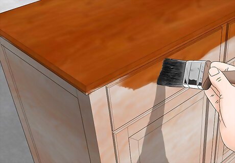Add a new coat of paint to wooden furniture to give it a fresher look. Painting furniture is one of the easiest ways of making it look as good as new. Move your furniture onto a tarp or outside before giving it a new coat of paint. Wait 24 hours before putting the furniture back to allow the paint to completely dry. You can also paint furniture made out of metal, wicker, or plastic. Even upholstered furniture can be painted over! For furniture that will see heavy use, such as a dining table or any furniture subjected to wear by pets or small children, seal the finish with a durable sealant like polyurethane to better protect it.