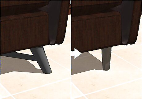 Change the legs on chairs and sofas to subtly alter their look. You may not think this would do much, but you’d be surprised how much of an impact seat legs actually make. For a more dramatic impact, replace your chair or sofa legs with legs in a completely opposite style. For example, if your sofa’s legs are curved and thick, replace them with straight, thin legs. If your chair’s legs are bland and smooth, opt for stylish curved legs instead. If you’re working with a sofa, make sure to remove the skirt so you can show off its new legs and give it an overall sleeker image.