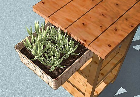 Turn an old side table into an outdoor planter by replacing the drawer. Pull out the drawer from an old side table and unscrew the metal insert if it has one. Then, place the end of a thin wicker basket in the drawer space so that the basket hangs off the end of the table. Fill this basket with soil and move your plants into it to finish your new planter. If you don’t have any plants, you can also repurpose the old side table as an outdoor drink stand.