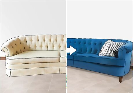 Remove the skirts and add new stuffing to a couch to make it look new. First, remove the skirt from your old couch to make it look more modern and open up “breathing space” underneath it. Then, replace the sagging cushion from the seats and siding to your sofa more “bounce.” Poly-Fil batting is particularly useful for adding fluff back to sagging couch cushions. If the cushions on the back of the couch are too difficult to replace, you can also cover them up by adding some throw pillows to the seats.